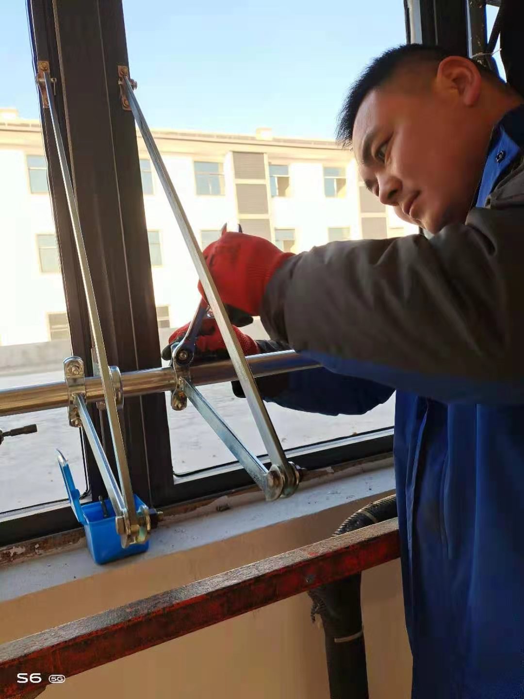 此次電動排煙窗工程采用曲臂聯(lián)動電動開窗器,由螺桿式電動開窗器驅(qū)動。