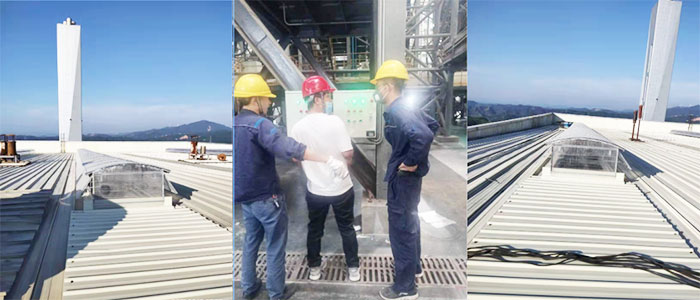 8月19日把產(chǎn)品發(fā)貨贛州,安裝人員 隨后趕至現(xiàn)場開安全教育會議,查看現(xiàn)場時發(fā)現(xiàn)廠房內(nèi)設(shè)備進不去,鑫友們商議好布線方案經(jīng)電廠副總同意后開始施工布線。高度太高,從九層穿線至三層,安裝人員克服困難,倍道而進,爭取早日交付。