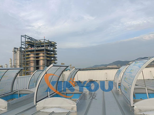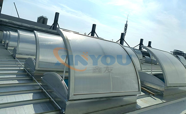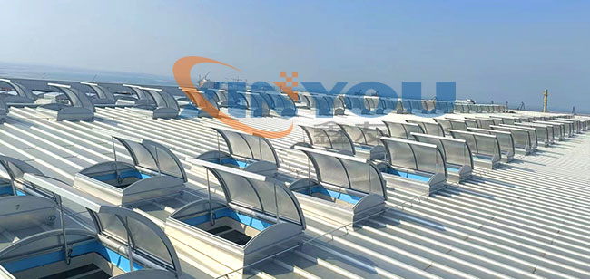 圓拱形的設(shè)計(jì),外觀(guān)優(yōu)美、通風(fēng)排煙兼顧自然采光,開(kāi)啟角度一般為30度到45度***開(kāi)啟角度為90°。