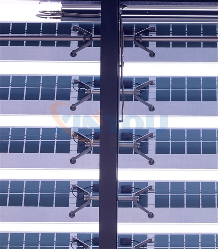 光伏百葉,能夠有效的將太陽能轉(zhuǎn)化為電能、動(dòng)能,同時(shí)百葉滿足日常的采光、遮陽這樣功能。光伏百葉環(huán)境控制單元可以預(yù)置對風(fēng)、雨、光、溫、煙等感應(yīng)參數(shù),使之通過外置感應(yīng)器,對超限值作出及時(shí)回應(yīng)進(jìn)而控制百葉動(dòng)作,完全實(shí)現(xiàn)了綠色環(huán)保節(jié)能的建筑理念。