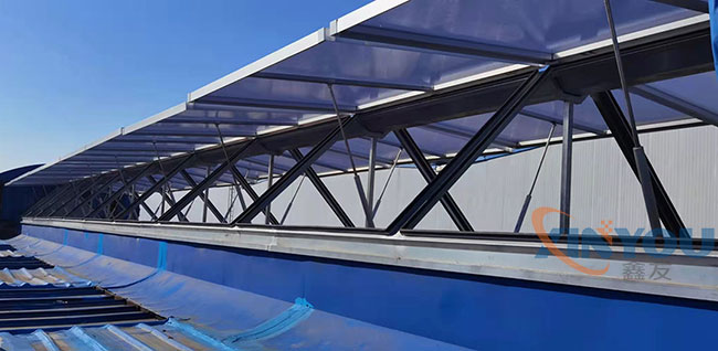 4.2采光面:聚碳酸酯陽光板、雙層夾膠玻璃、FRP采光板等可選。
